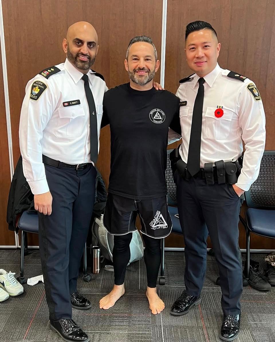 Joel with Chief of Police brass while training York Region officers at York Region Headquarters.